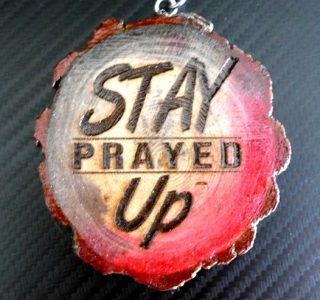 New Design! ‘STAY PRAYED UP’, One Handcrafted Necklace with Single Sided Artistic Red Colored Medallion